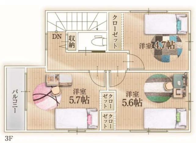 間取り/間取り詳細 4LDK  洋室6.75帖 / LDK20.8帖 / 洋室5.7帖 / 洋室5.6帖 / 洋室4.7帖 築年月 2025年5月