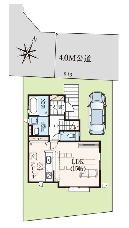 接道1 北側 公道 幅員4.0m