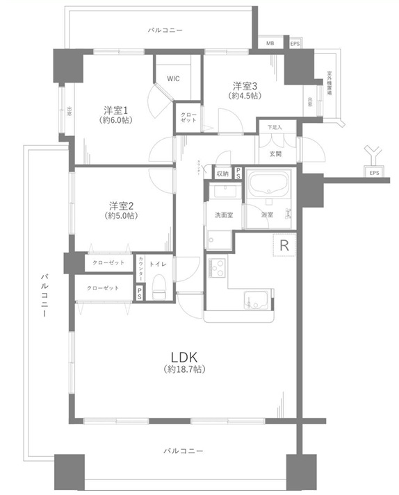 間取り/間取り詳細 3LDK / LDK18.7帖 / 洋室6.0帖 / 洋室5.0帖 / 洋室4.5帖