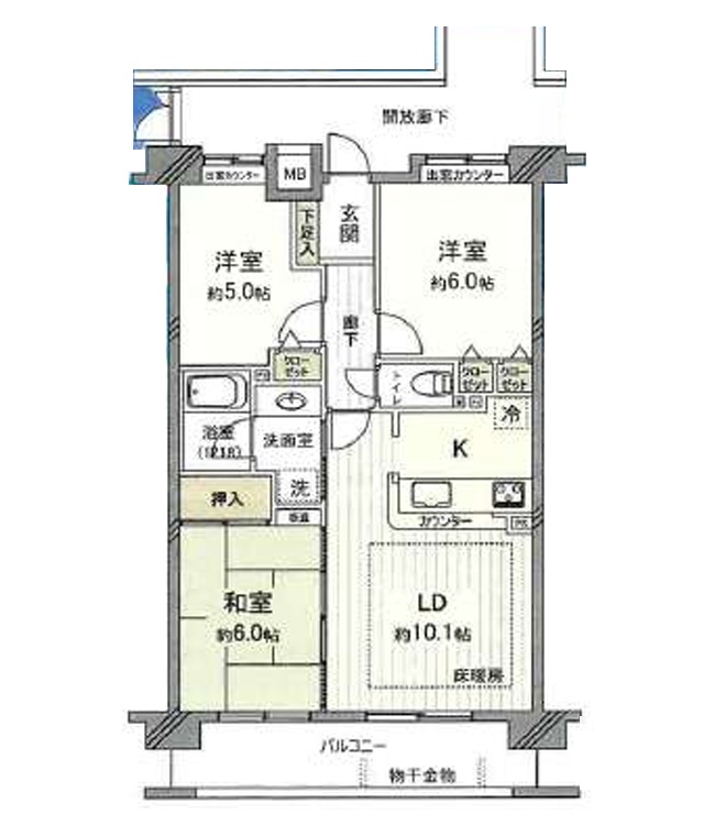 | 間取り/間取り詳細 | 3LDK / LD10.1帖 / 洋室6.0帖 / 洋室5.0帖 / 和室6.0帖 | ||