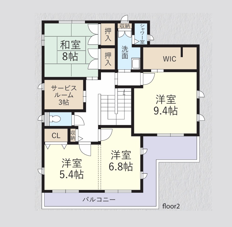 ・1階と2階に洗面室、シャワールーム(2階)完備
